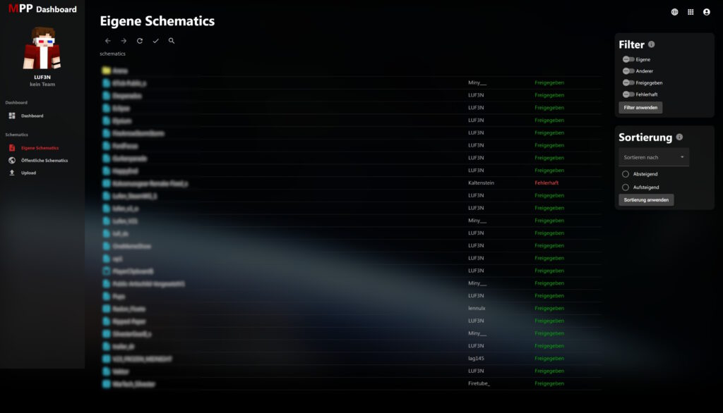 Our dashboard allows you to manage your schematics. You can also make further settings there.
