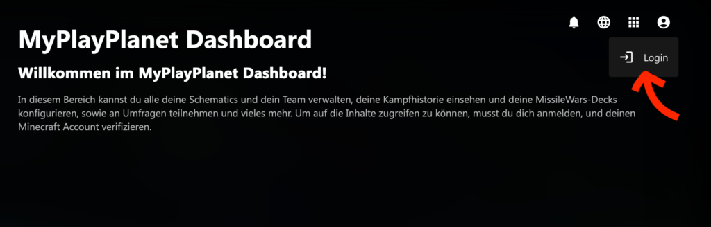 In the MyPlayPlanet Dashboard you can manage all your schematics and your team, view your battle history, configure your MissileWars decks, participate in polls and much more. To access the content, you need to log in and link your Minecraft account.
