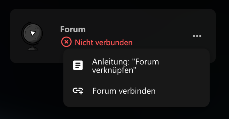 Log in to the dashboard with your MPP account. Then click on the user icon in the header menu and select "Linked services". Here you will see the forum, among other things. By clicking on the 3 dots you will find the option "Connect forum". If you click on this, you will be redirected to the forum.