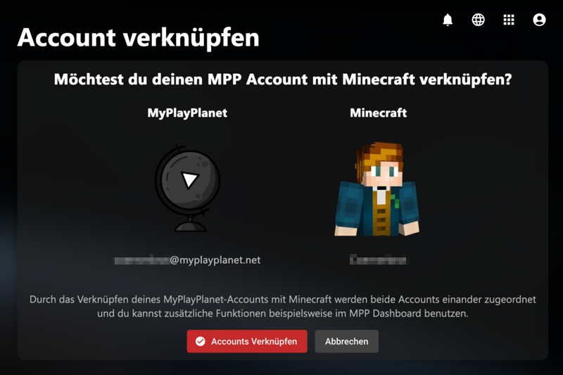 To use dashboard functions that are connected to your Minecraft account, for example (such as Schematic Upload), you must first connect these services (such as Minecraft) to your MPP account. Don't have an MPP account yet? Then read above how to create one.